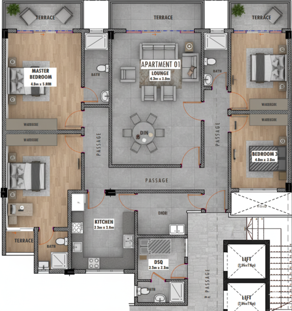 Spacious and functional, the 4 bedroom units offer added comfort and flexibility, suitable for families or investors seeking higher rental yields.